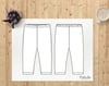 A vector line drawing of a pair of baby, infant, or toddler leggings. These simple leggings have an elastic waist applied with a coverstitched seam. The legs have coverstitch hems. The drawing has proper proportions and stitching lines, perfect for use in a tech pack or product mock-up. Add your own embellishments, embroidery, screen printing, applique, and colors. Front and back views are included. This is a digital download sent as a ZIP archive and includes the following high resolution files: