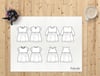 A collection of vector line drawings of an infant-toddler t-shirt dress. There are three neckline variations which include neck binding, neck binding with a keyhole back opening, and ribbing. There are two sleeve variations, short and long sleeves, and a sleeveless option. The sleeve and skirt features coverstitch hems. The drawings have all the proper proportions and stitching lines, perfect for use in a tech pack or product mock-up. The dress details can be separated and recombined to create a new design. This is a digital download sent as a ZIP archive and includes the following high resolution files for each version: